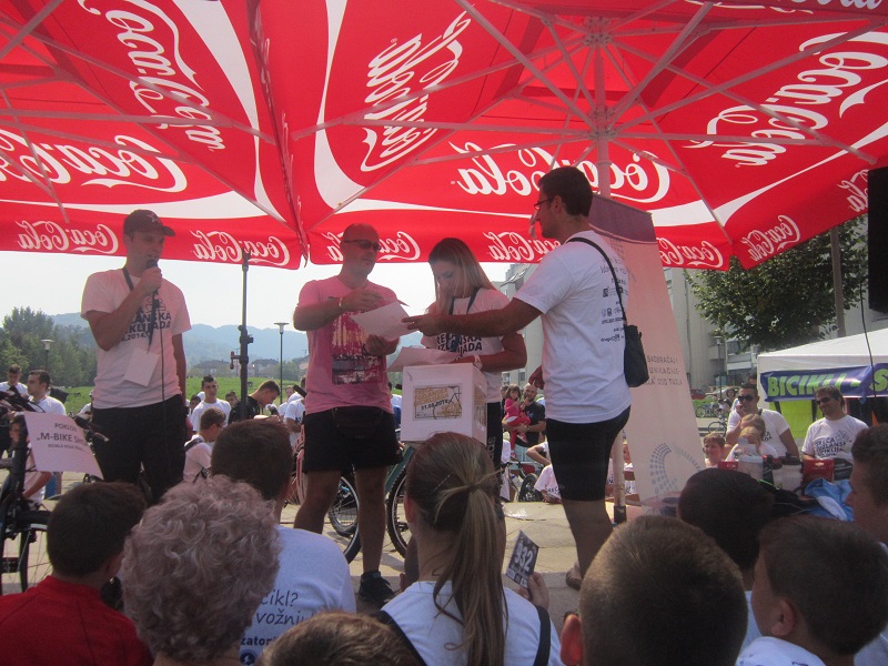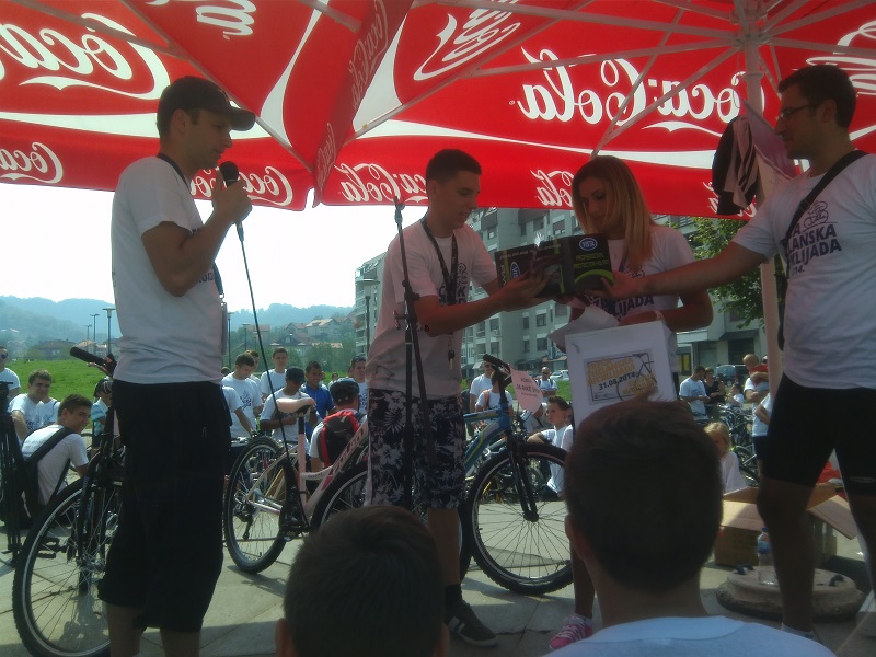 Nakon osvježenja i kratkog odmora pristupilo se izvlačenju nagrada za učesnike koje su obezbjedili organizatori. Tom prilikom podijeljeno je ukupno 36 nagrada u vidu korisne biciklističke opreme: zaštitne kacige, torbice, naočare i sl., a tri najsretnija učesnika osvojila su po bicikl. Fotografije i video zapisi sa ove manifestacije potvrđuje zainteresovanost i oduševljenje svih učesnika, ali i ostalih građana koji su se slučajno našli na ruti kojom su prolazili biciklisti.